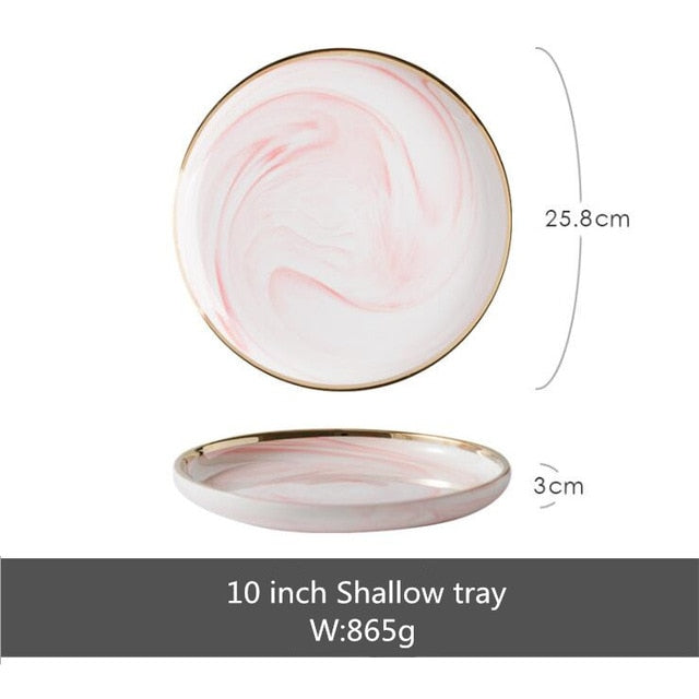 Pink Marble Dinner Plate Set Ceramic Kitchen Plate Tableware Set Food Dishes Rice Salad Noodles Bowl Soup Kit