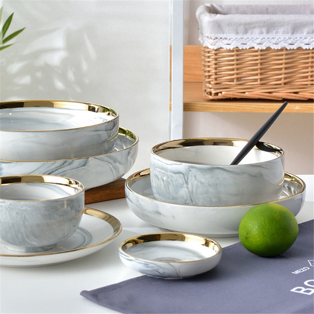 2019 New fashion Useable Marble Pattern Porcelain Plate Ceramic Dinner Plate
