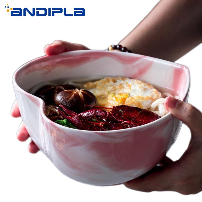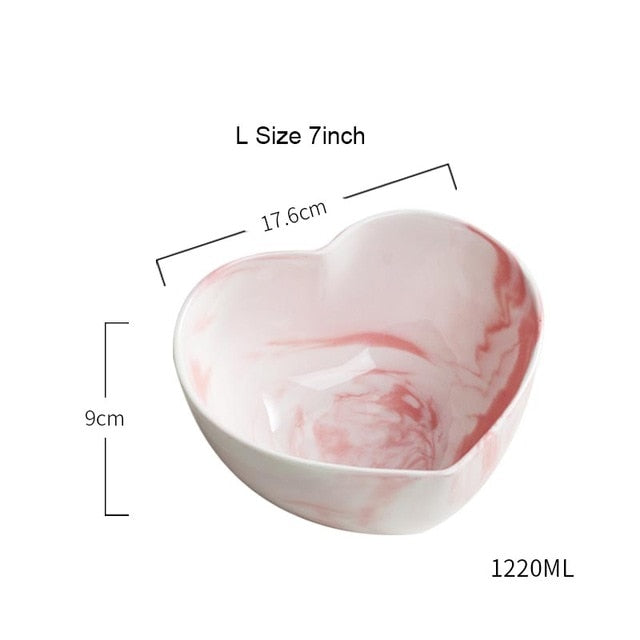 7 inch Nordic Pink Marble Texture Ceramic Bowl Creative Heart-shaped Ramen