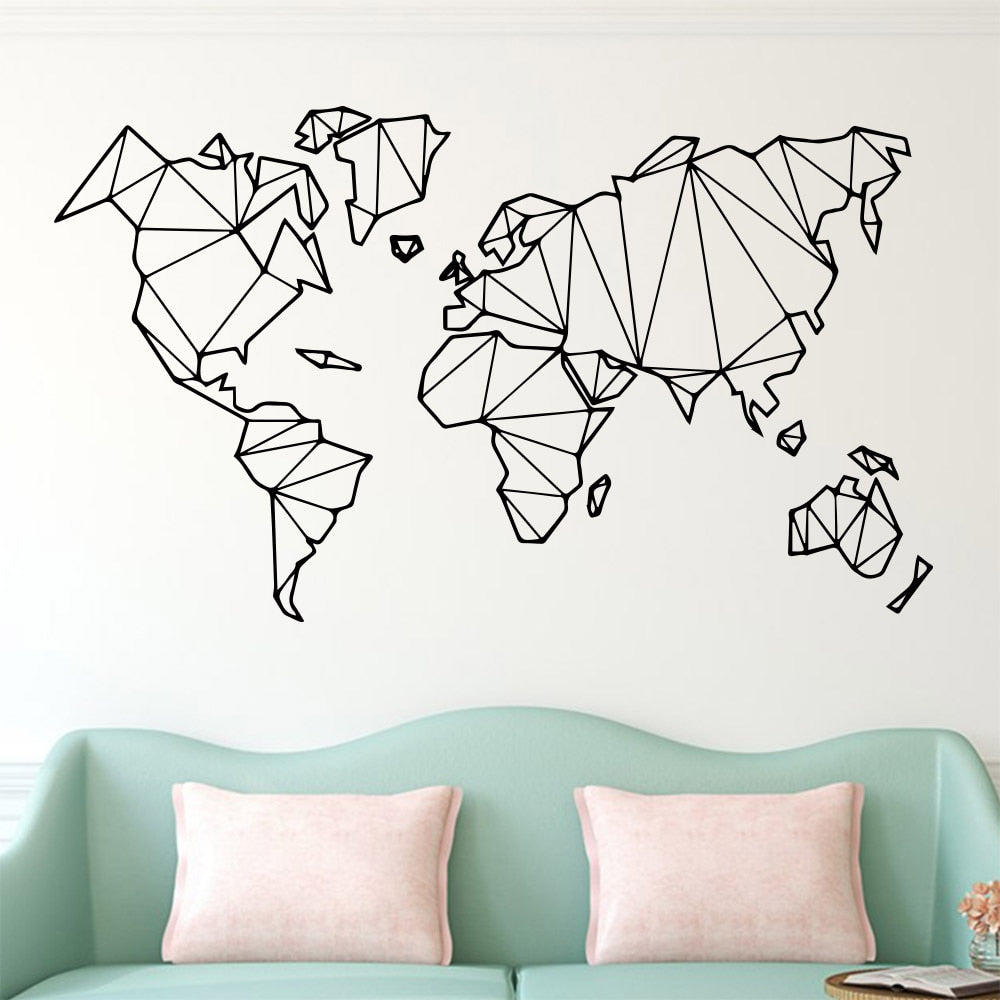Large Size Geometric World Map Wall Sticker Vinyl Mural Removable Bedroom Decor Sticker